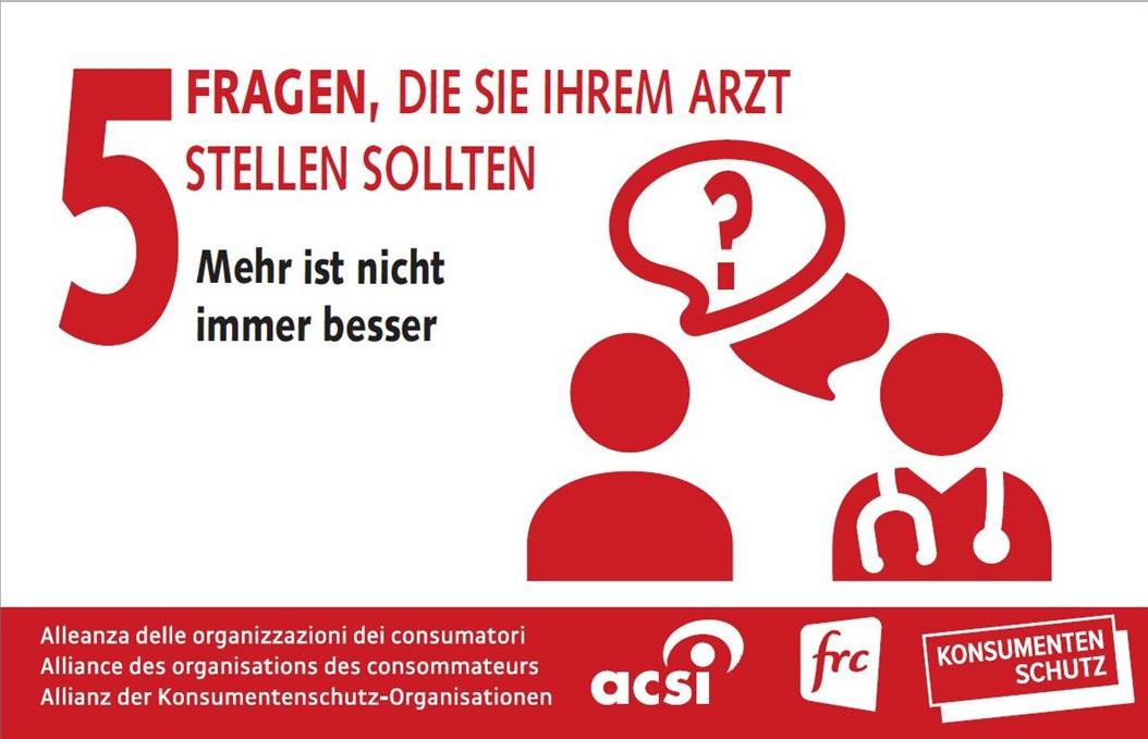 Gemeinsam mit den Partnerorganisationen der Allianz der Konsumentenschutz-Organisationen bietet der Konsumentenschutz kostenlos ein Kärtchen im Kreditkartenformat an, das die 5 Fragen in Kurzform enthält. Nutzen Sie dieses handliche Kärtchen als Gedankenstütze für Ihren nächsten Arztbesuch. Am besten überlegen Sie sich bereits im Vorfeld, welche Fragen Sie zusätzlich stellen möchten und notieren sich diese. Wenn Sie sich unsicher fühlen, können Sie sich auch von einer vertrauten Person begleiten lassen.