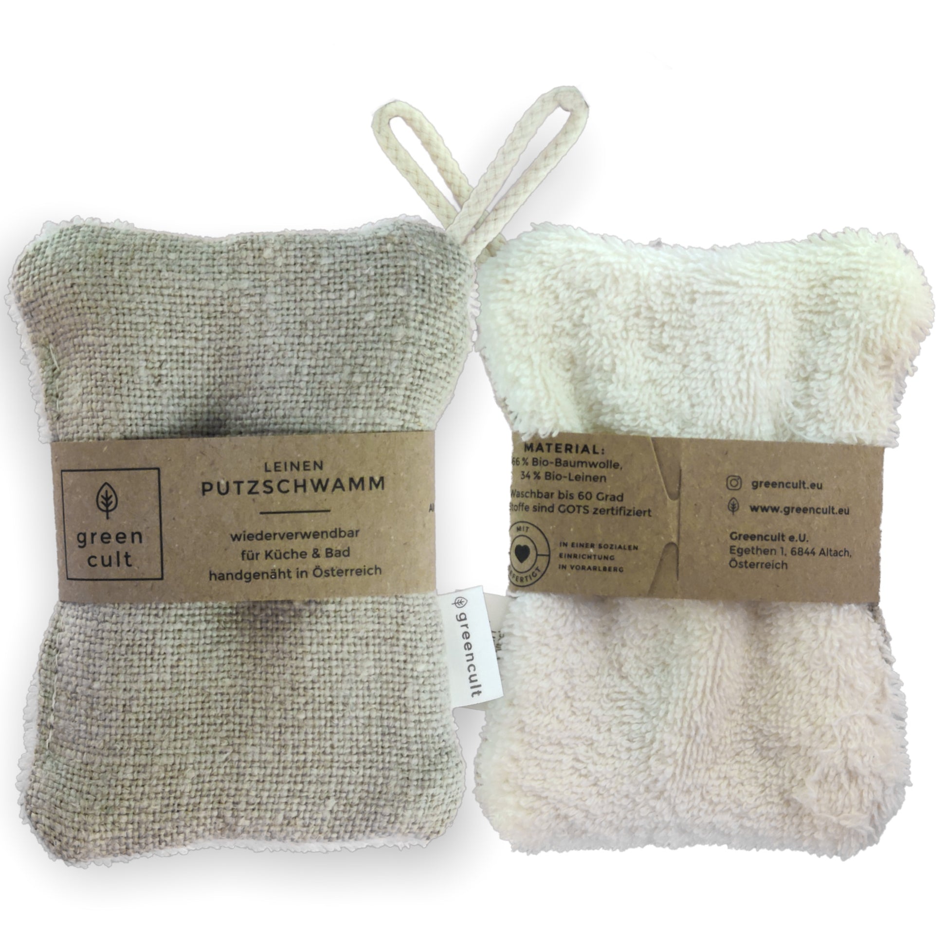 Der Schrubbschwamm aus Bio-Leinen und Bio-Baumwolle ist ideal für den universellen Abwasch. Er verfügt über zwei verschiedene Seiten: Eine mit feiner Oberfläche und eine mit grobem Leinenstoff, mit der auch hartnäckige Krusten einfach entfernt werden. Die Stoffe werden in Europa hergestellt, die Schwämme in einer sozialen Einrichtung in Österreich genäht. Die Schwämme sind frei von Mikroplastik und können problemlos bei 60° C gewaschen werden.